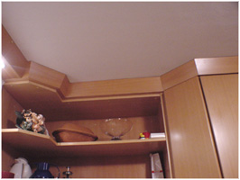 In den Oberschränken von vorne nicht sichtbar sind schwenkbare