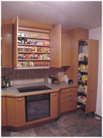 So wurden neben dem Herd zwei Schrägauszüge montiert, über dem 90 cm