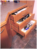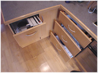 Die ebenfalls in Multiplex Buche gefertigten Schubladen sind auf