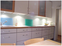 Zwischen den Unter und Oberschränken sind anstelle eines
