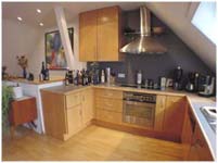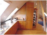 Buche Natur Einbauküche in die Dachschräge eingebaut. Trotz der