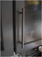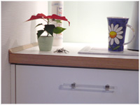 Die formschönen Griffe aus 20mm dickem, satiniertem Glas auf