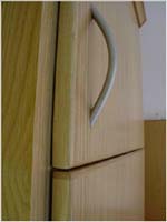 gearbeitet sind, die waagerechten Kanten sind ebenfalls mit Massivholzanleimern, jedoch nicht profiliert, versehen. Die ebenfalls in