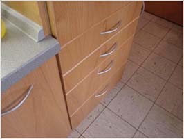 Die mit 0,8 mm Resopal beschichteten Arbeitsplatten sind ebenfalls mit