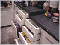 gefertigten Schubladen sind auf Teleskop-Vollauszügen mit Selbsteinzug