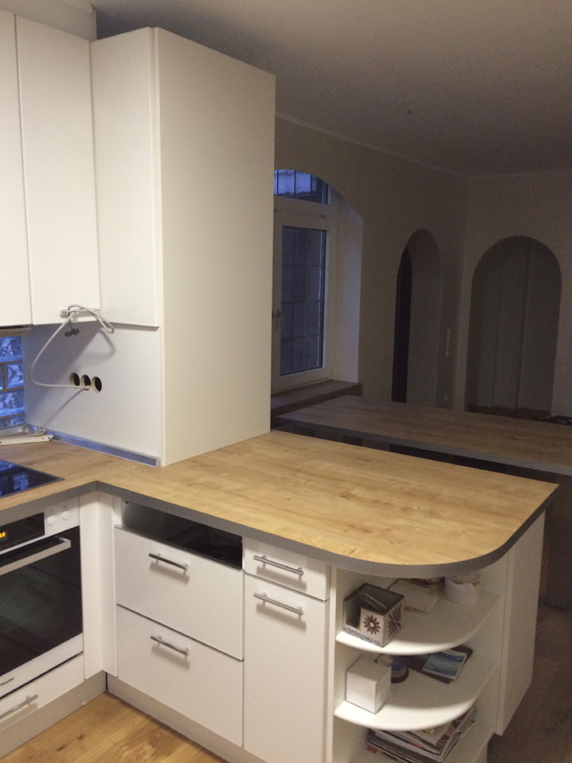 Die mit 0,8mm Resopal beschichteten Arbeitsplatten sind ebenfalls mit